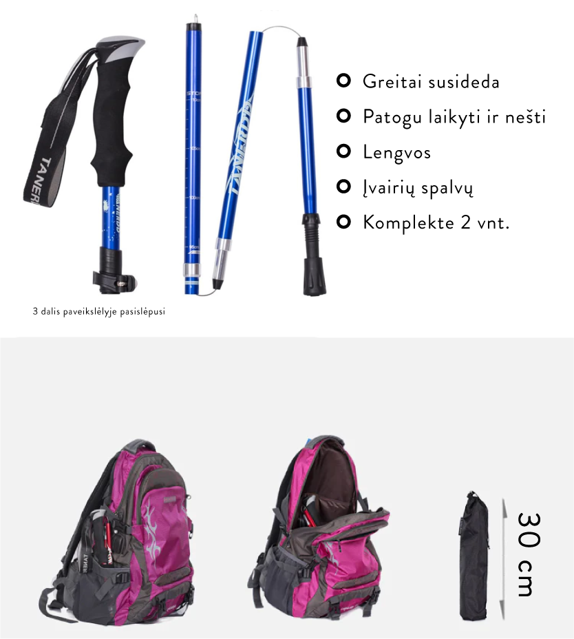 - Universalumas: Tinka tiek dienos žygiams, tiek ilgesnėms kelionėms.