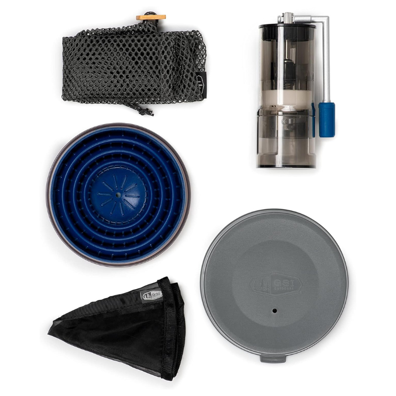 Su „GSI Outdoors“ „Gourmet PourOver Java“ rinkiniu galite mėgautis šviežia kava bet kur ir bet kada. Kompaktiškas rinkinys, idealus kelionėms, stovyklavimui, žygiams ir kelionėms kemperiu. Jame yra plieninis rankinis malūnėlis, sulankstomas silikoninis piltuvėlis, daugkartinis Nr. 4 filtras ir kelioninis maišelis. Paprasta naudoti: sumalkite kavą, uždėkite filtrą ir užpilkite vandeniu. Tinka paruošti 1-2 puodelius kavos. Lengvas (0,84 kg) ir kompaktiškas – puikiai telpa į mažą bagažą. „GSI Outdoors“ garantija visam gyvenimui.
